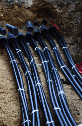 We connect new properties to the electricity network using underground service cables from the nearest pillar or pit, including all trenching, conduit installation, and terminations.