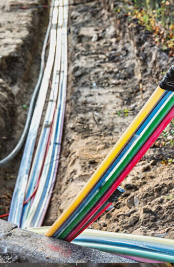 Expert installation of mains cabling from network pillars to metre boxes with correct segregation, depth, and protection in accordance with distributor regulations.